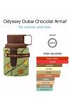 Armaf Odyssey Dubai Chocolate EDP 100 ml, çikolata, kakao ve vanilya notalarının öne çıktığı gourmand bir unisex parfümdür. Açılışta kakao ve baharatlı akorlar, kalpte pralin, yasemin ve tonka fasulyesi, dipte ise vanilya, amber ve sandal ağacı ile tatlı-oryantal bir yapı sunar.