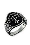 Armagano Gümüş Çerkes Bayrağı Motifli Erkek Yüzük