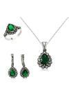 Gümüş Hürrem Sultan SetGümüş ve zümrüt yeşili zirkon taşın ışıltısı dünyanıza renk katacak ve yaşam enerjinizi artıracak.