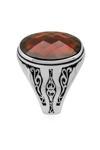 Gümüş erkek yüzük modellerinin tamamında olduğu gibi kırmızı zirkon taşlı erkek yüzük modeli de tamamen el emeği ile üretilmiştir.