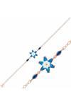 925 ayar gümüşten imal edilmiştir. Üzerindeki taşlar zirkondur. Gümüş üzerine rose altın kaplama yapılmıştır. Diğer Bilekliklerde olduğu gibi gümüş Mavi lotus çiçeği Bilekliklerde el emeği ile üretilmiştir. Gümüş ve değerli taşlar nedeniyle belirtilen ortalama ürün ağırlığında ± %10 sapma olabilmektedir. En: 1.20 cm