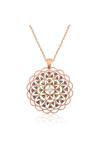 Gümüş Rose Geometrik Desenli Madalyon KolyeRenkli zirkon taşlar ile süslenmiş geometrik desenli madalyon kolye, şık ve ışıltıyı sevenler için tasarlandı.
