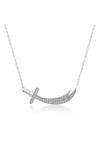 Göz alıcı zirkon taşlarla süslenmiş, zarif tasarımıyla dikkat çeken gümüş kolye