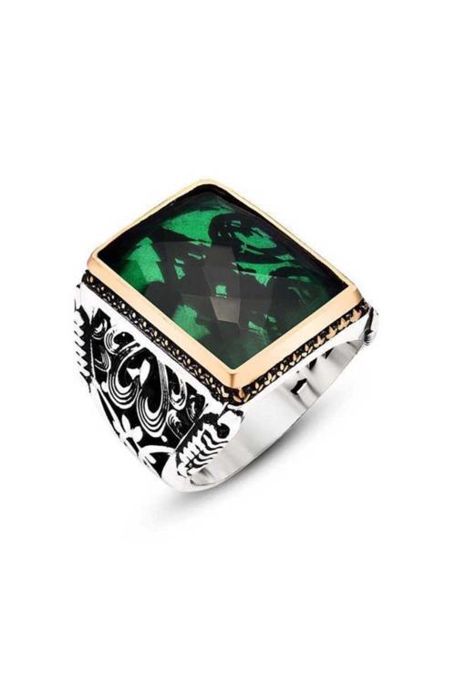 Gümüş Yeşil Zirkon Taşlı Erkek Yüzük Her erkeğin tarzına uygun bir takı bulmak mümkündür.
