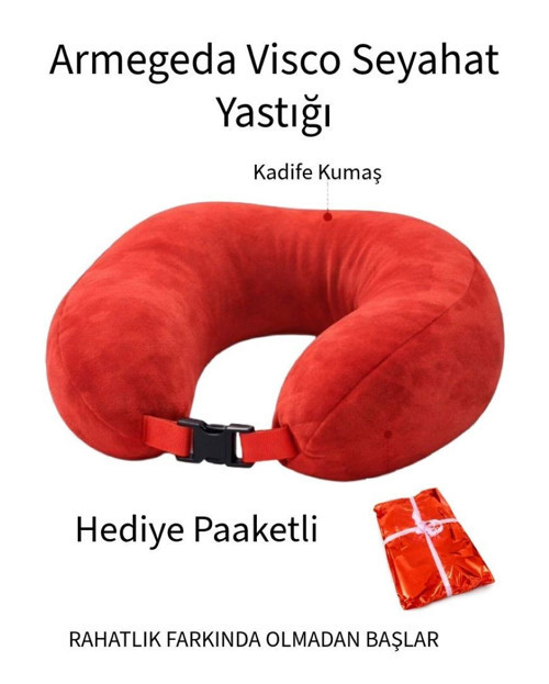 Armegeda Sıradışı Tasarımlar Armegeda Hediye Paketli Visco Seyahat Yastığı Boyun Destekli 212 Kırmızı – Ergonomik Kadife Kumaş