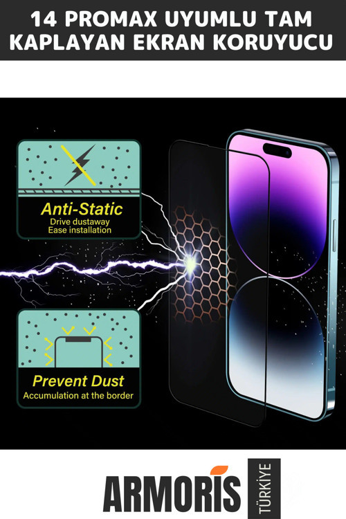 Armoris Yeni Nesil İphone Apple 14 Pro Max Anti Static Dayanıklı Sağlam Tam Kaplayan Cam Ekran Koruyucu