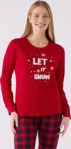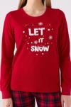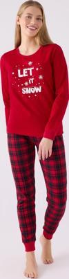 Arnetta 3105 Noel Kadın Let İt Snow Ekose Kırmızı Uzun Kol Pijama Takım