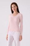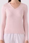 Arnetta Kadın V Yaka Örme Pembe Uzun Kol Pijama Takım