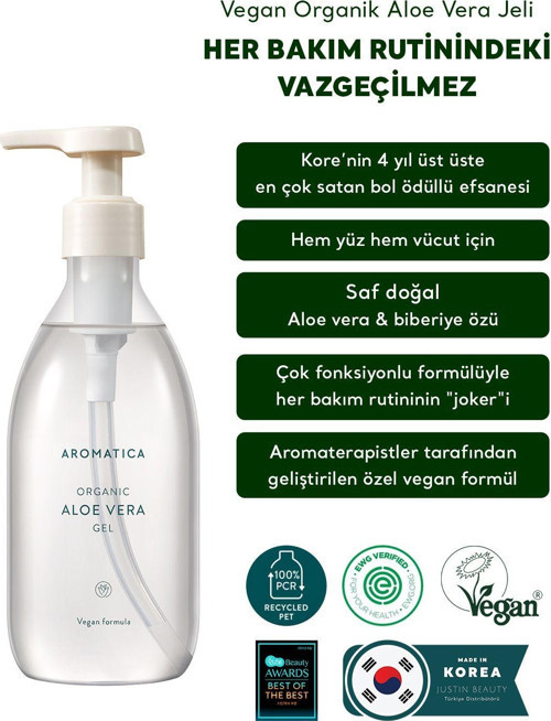 Aromatica Organic / Soothing Aloe Vera Gel - Vegan Nemlendirici Yatıştırıcı Yüz - Vücut Aloe Vera Jeli 300Ml