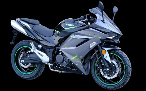 - Canlı yeşil rengi ile dikkat çeken AR125 motosiklet, şehir içinde ve dışında rahat bir sürüş deneyimi sunar.