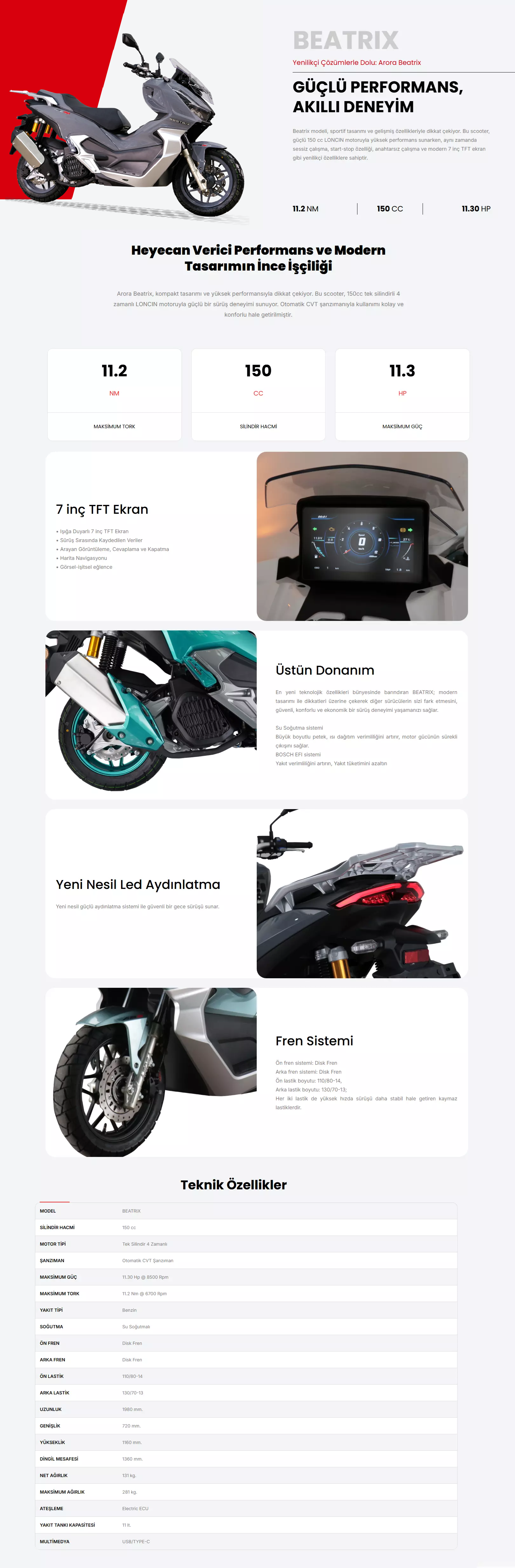 Arora markasının kalitesiyle üretilen bu motosiklet, şehir içi ulaşımda pratik ve ekonomik bir çözüm sunar. Üretici: Arora