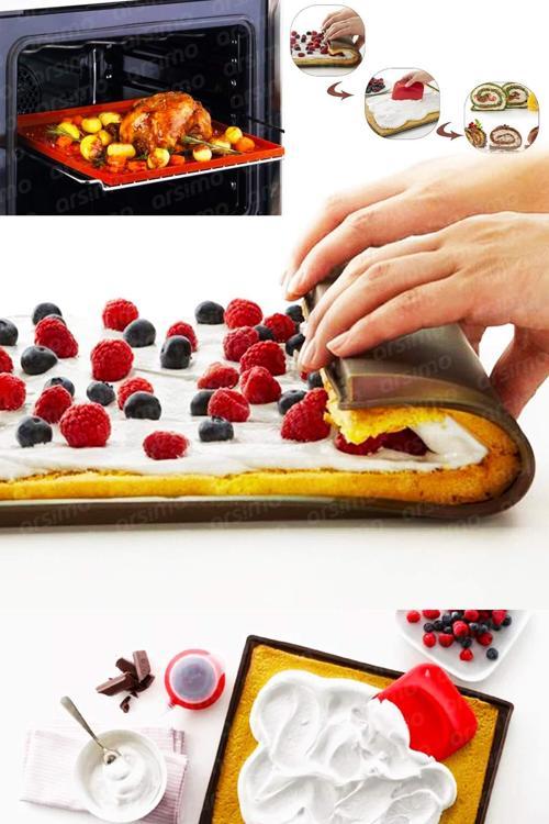 Arsimo Pratik Silikon Rulo Pasta Pişirme Kalıbı Ve Matı | Yanmaz Yapışmaz Rulo Kek Fırın Pişirme Matı 25×30