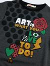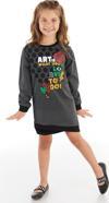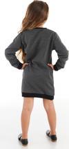 Pamuklu, orta kalın kumaştan, etekleri verev kesilmiş, sim baskılı kışlık elbise.