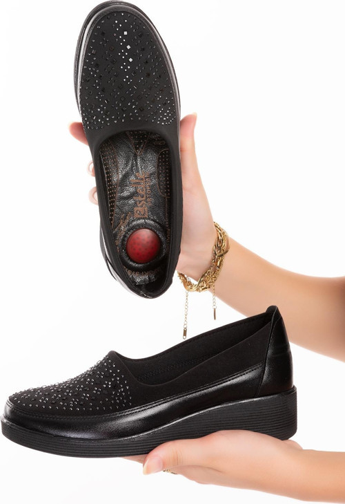 Üst Saya Tekstil ve Taş detaylı-Mostra Topuk Dikeni Fonksiyonu Destekli Ortopedik-Poliüretan Taban (Hafif gramajlı taban )-Türkiye'de Üretilmiştir