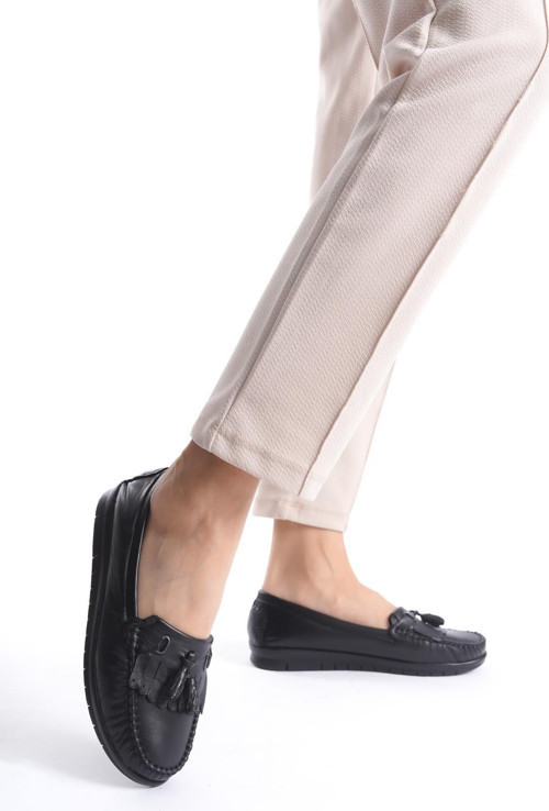 Artı-Artı014-BB-501-PSK- Hakiki Deri Günlük Ortopedik Kadın Bağsız Siyah Roc Ayakkabı