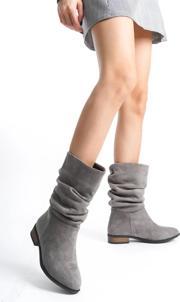 Artı-Artı006-0144 Kadın Günlük Körüklü Gri Süet Binici Çizme