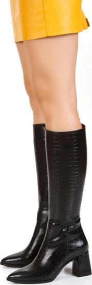 Artı-Artı028-0132-2 Kadın Günlük Kalın Topuklu Krokodil Siyah Baskılı Çizme
