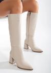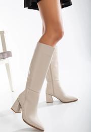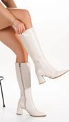 Artı-Artı028-0132 Kadın Günlük Kalın Topuklu Beyaz Cilt Çizme