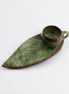 Dekoratif ve Şık Ceviz Yaprak Figürlü 1 Kişilik Yeşil ve Kahverengi Renklerinde Çay Kahve Fincanı Seti.