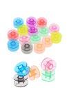 25 adet renkli plastik masura ile farklı renklerdeki kumaşlar için çeşitli dikiş seçenekleri sunar