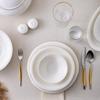 Yumuşak parlak porselen yüzeyine işlenen hatlar, ışığı her açıdan zarifçe yansıtır.