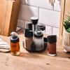 İçerisine tuz, karabiber, yağ, sirke vb. gıdalarınızı gönül rahatlığı ile uzun süre saklayabilirsiniz.Şık duruşa sahip metal stand paslanmaz, kararma yapmaz yapıdadır.