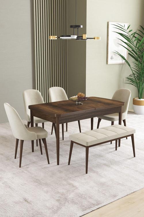 Ikon Barok Desen 80x132 Mdf Açılabilir Mutfak Masası Takımı 4 Sandalye, 1 Bench