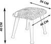 Krem puf ayakları dahil 40 cm yüksekliğe, 34 cm derinliğe ve 46 cm genişliğe sahiptir. Şık tasarımı ve dayanıklı yapısı sayesinde çok amaçlı şekilde kullanmak mümkün olur.