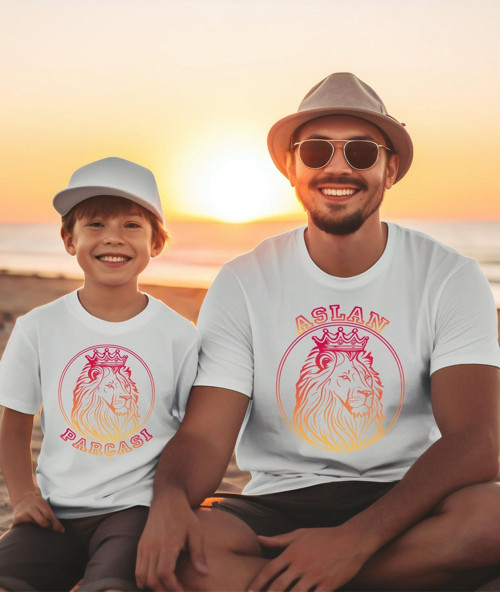 Aselinda Aslan Parçası Baba, Oğul, Kız Baskılı Tişört-Tekli Üründür Kombin İçin 2 Adet Sepete Ekleyiniz)