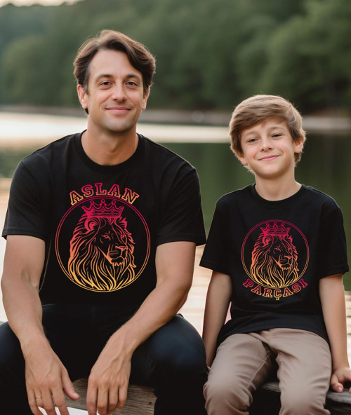 Aselinda Aslan Parçası Baba, Oğul, Kız Baskılı Tişört-Tekli Üründür Kombin İçin 2 Adet Sepete Ekleyiniz)