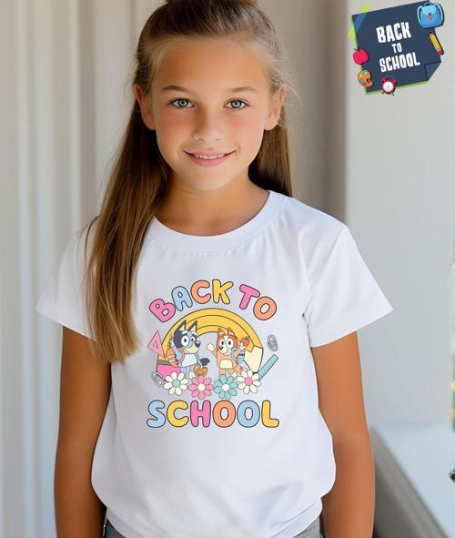 Aselinda Bluey Baskılı Back To School Unisex Çocuk Tişört-Okula Dönüş Baskılı Çocuk Tişört