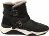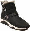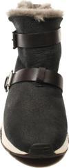 Ash Mochi Siyah Dokulu Süet İçi Kürk Yaka Yastıklı Deri Tabanlı 5 cm Taban Kemer Detaylı Kadın Bot