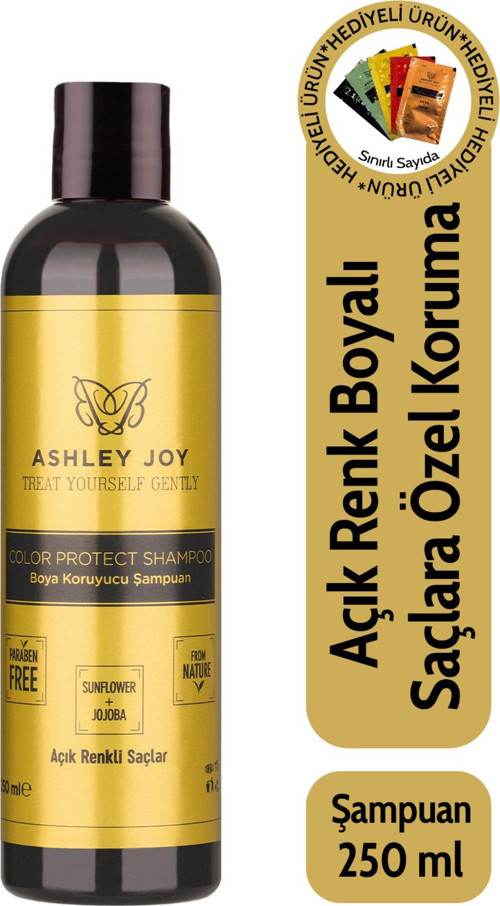 Ashley joy açık renk boyalı saçlar için geliştirilmiş şampuan,ayçiçek tohumu ve jojoba özü içerikli formülü ile saçı temizlerken aynı zamandarengini uzunca süre koruyabilmenizi hedefler.