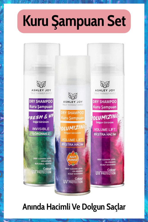 Ashley Joy İnce Telli Saçlar İçin Hacim Veren Volumizing Kuru Şampuan Aqua Bubble Kokulu 200 ML Saçlarınızdaki yağlı görüntüyü yok etmenize yardımcı olurken saçlarınıza hacim ve dolgunluk verir, anında temiz ve ferah bir görüntüye kavuşmanızı destekler.KULLANIM: İyice çalkalayınız, saçlarınızı bölümlere ayırarak her bölüme 30 cm uzaklıktan kuru şampuanı uygulayınız.