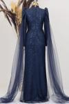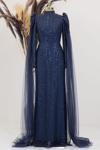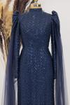 Esilanur Bersu Önü Pul Boncuk İşlemeli Tesettür Abiye Lacivert