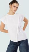 Şıklığı ve rahatlığı bir arada arayanlar için ideal bir seçenek olan bu beyaz bluz, asimetrik tasarımı ve pilise detaylarıyla dikkat çekiyor. %100 pamuklu örme kumaşı, nefes alabilir yapısıyla gün boyu konfor sunuyor. Kısa kolları ve bisiklet yakasıyla yaz aylarında serin ve şık görünmenizi sağlıyor. Rahat kalıbıyla her vücut tipine uyum sağlarken, bağlama detayıyla da tarzınıza farklı bir hava katıyor.