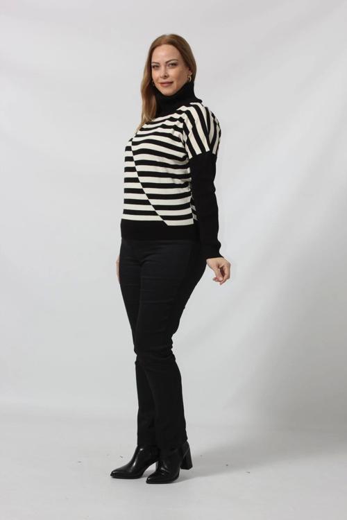 3271 Asimetrik Çizgi Desenli Boğazlı Kazak Kış aylarında sizi sıcak tutacak aynı zamanda şık görüntüsüyle rahat kullanabileceğiniz büyük beden kazağımız vazgeçilmeziniz olacak..