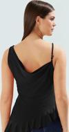 Bu özel bluz, yüksek kaliteli 96% polyester ve 4% elastan karışımı bir kumaştan üretilmiştir. Nefes alabilir yapısıyla gün boyu rahatlık sunarken, Sandy dokuma tipiyle de yumuşak ve ipeksi bir his sağlar. Asimetrik tasarımı ve fırfır detayları, bluza zarif ve şık bir görünüm kazandırır. Degaje yakası ise hem modern hem de zamansız bir stil oluşturur. Vücuda oturan kalıbı sayesinde her vücut tipine uyum sağlar ve her türlü alt giyimle rahatlıkla kombinlenebilir.