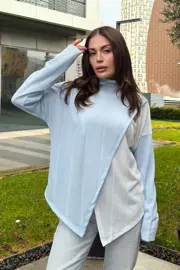 Buklemoda Asimetrik Kesim Bloklu Salaş Bluz