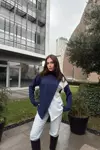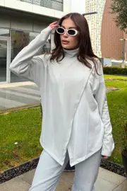 Buklemoda Asimetrik Kesim Bloklu Salaş Bluz