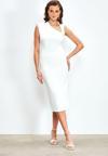 Sateen Asimetrik Midi Boy Elbise - Ekru
