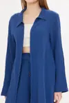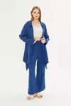Seçil Kadın Pile Detaylı Tek Düğmeli Uzun Ceket 0012 Lacivert - Image 1