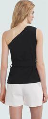 Scuba krep kumaşın dayanıklılığı ve kolay bakımıyla uzun yıllar boyunca sorunsuz bir şekilde kullanabilirsiniz. Asimetrik yaka ve kolsuz tasarımıyla yaz aylarında serin ve şık kalmanızı sağlar. Bluzun kaliteli malzemesi ve kusursuz dikişleri, üstün işçiliğin bir göstergesidir. Rahat ve şık bir görünüm için bu bluzu skinny jeanler veya şık bir etekle kombinleyebilirsiniz.