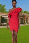 Ersefa Moda Fit Mezuniyet Balo Örme Asimetrik Yaka Kolsuz Kol Mini Boy Elbise