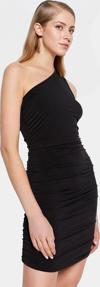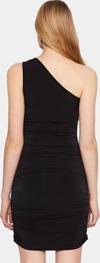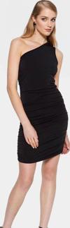 Kendinizi özel hissetmenizi sağlayacak bu siyah mini elbise, şıklığı ve konforu bir arada sunuyor. Asimetrik yakası ve vücuda oturan kesimiyle dikkat çekici bir tarz yaratırken, yüksek kaliteli örme kumaşı gün boyu rahatlık hissi veriyor. Büzgü detaylarıyla hareketli bir görünüm kazanan elbise, her vücut tipine uyum sağlayan yapısıyla da öne çıkıyor. Astarlı yapısı sayesinde rahatlık sunan elbise, hem gündüz hem de gece kullanımına uygun.