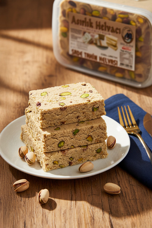 Geleneksel tahin helvasına Antep fıstığının eşsiz aroması eklendi, ortaya unutulmaz bir lezzet çıktı!