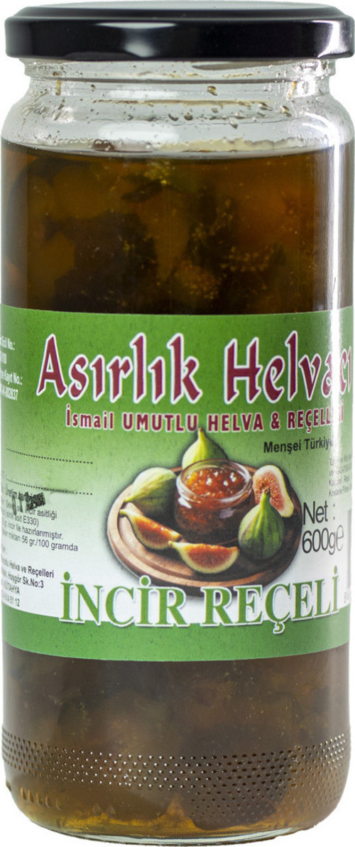 Asırlık Helvacı Yeşil İncir Reçeli 600 G – Doğal, Katkısız Ve El Yapımı Geleneksel Kahvaltılık Lezzet