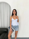 Askılı Dekolte Deraylı Crop - Açık Mavi