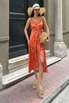 Now Moda Askılı Kruvaze Desenli Uzun Turuncu Elbise %60 Polyester %40 Pamuk kumaştan üretilen çizgi desenli bu harika elbise, şık tasarımıyla kalbinde taht kuracak! Rahat yapısı ile çok şık bir tasarıma sahip renklerin harika uyumundan oluşan bu modelimiz,rahat yapısı ile tarzını yansıtacaktır. Nefes alabilen esnek doğal kumaştan üretilmiştir.