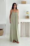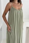 Doğal duruşu ve zarif detaylarıyla öne çıkan Askılı Önü Boncuklu İşlemeli Salaş Elbise, yaz aylarının vazgeçilmezi olacak! Haki rengin sakin şıklığı ve boncuk işlemelerin bohem havası, bu elbiseyi hem günlük hem de özel gün kombinleriniz için ideal hale getiriyor.